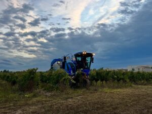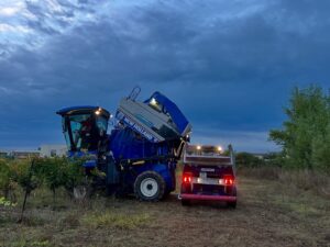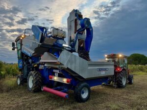 Ce matin, le soleil s’est levé sur des vignes déjà en effervescence. Depuis l’aube, hommes et machines s’activent dans un ballet parfaitement orchestré, où chaque geste compte. Le temps semble suspendu, comme si la terre retenait son souffle, rythmée par les vibrations des machines.